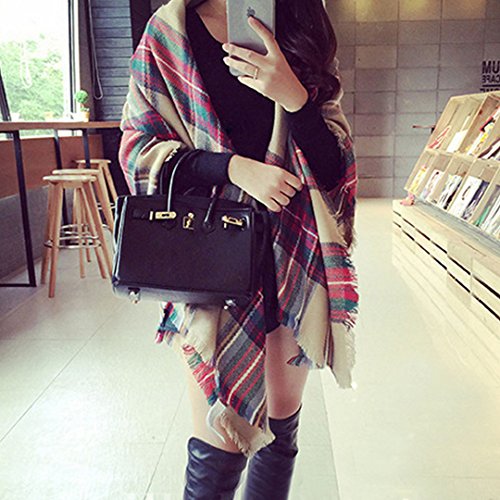 Made of high quality cashmere; super soft, comfortable and durable to wear, keep warm in cold autumn and winter. Plaid pattern and tassels look so fashionable and stylish, dress up you more beautiful and full of personality charm. Easy to wear and pair with other clothes. Wrap the shawl freely around any outfit and it will keep you warm all day long. A great accessory to keep your warm as well as fully extend to match your outfit as you wish during cold weather. Great gifts for women. Perfect for casual, outdoor, resort, prom, homecoming, party and bridesmaid in autumn and winter.