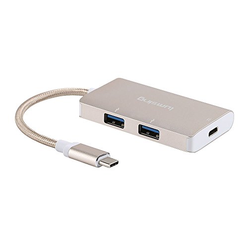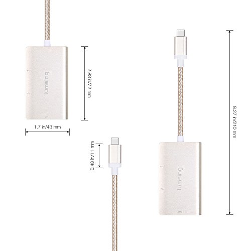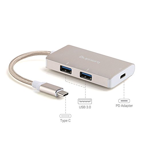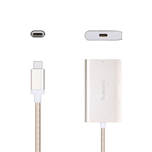 Lumsing USB C Type C to 2xUSB3.0 Hub+Type C PD Charging Nylon Adapter for New Macbook Pro 2016 12” 15”, Chromebook Pixel/Dell XPS 13/Yoga 900/Asus Zen AIO/Lumia 950(Grey)