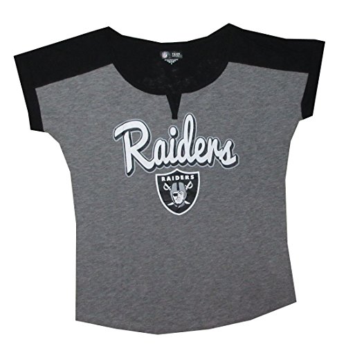 Womens OAKLAND RAIDERS Athletic Slit-V Neck T-Shirt / Tee XL Grey