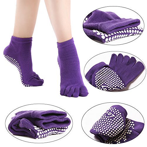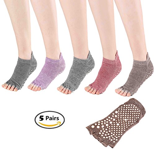 -. Title : 5 Pairs Toe Yoga Pilates Socks Non Slip Skid Barre Sock with Grips for Women & Men