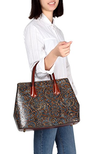 -. Title : Jair Retro Floral Embossed Genuine Leather Crossbody Tote Bags Handbags for Women