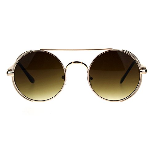 (SA106)/Accessories/Eyewear/DIRECT FROM USA/Mens Round Circle Lens Side Visor Metal Rim Retro Sunglasses