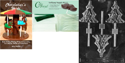 Cybrtrayd 45stK25GRBk-C097 Tree Lolly Chocolate Mold with Chocolatier's Bundle of 25 Lollipop Sticks, 25 Cello Bags, 25 Green Twist Ties and Chocolatier's Guide