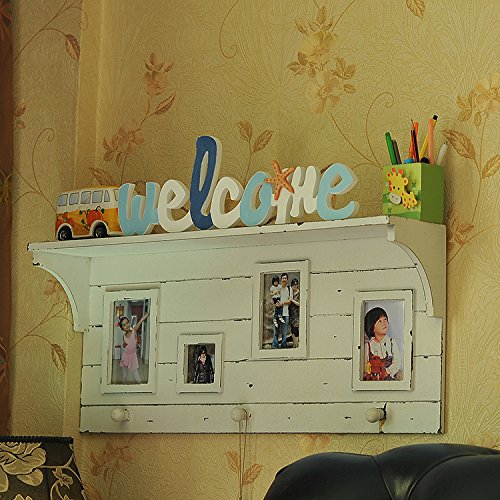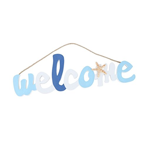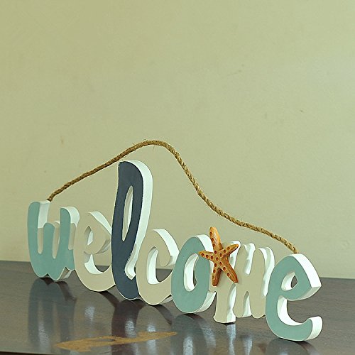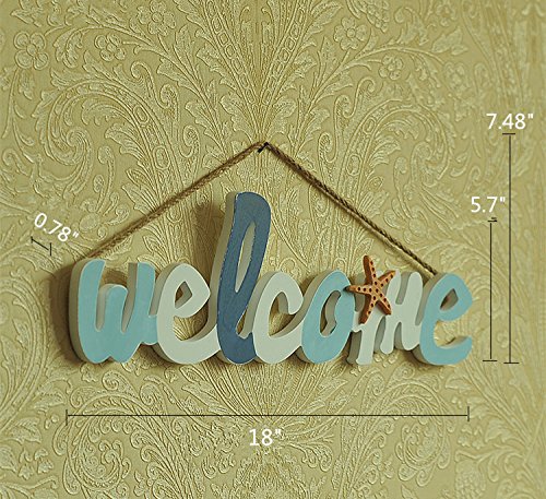 Wood Welcome Sign Board - Home Door Decorative Beach Theme Greeting Board with Hanging Rope - Home/ Shop/ Cafe/ Beach Themed Room Decor Mediterranean Style 18"x5.7"