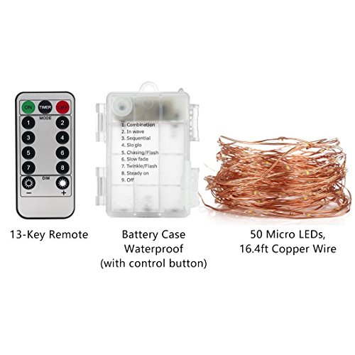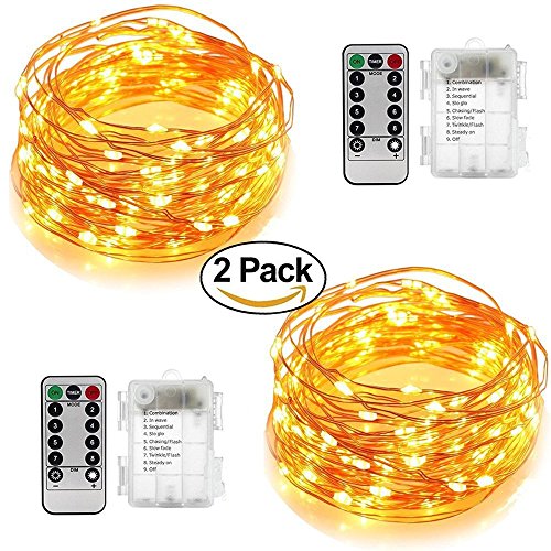 - Perfect for any occasion : You get 2 Sets of Battery Operated warm white Fairy Lights,each string light is with 16.4 feet moldable copper wire and 50pcs glowing micro Leds, which make every night romantic starry nights. Ideal for indoor and outdoor decoration, bedroom, patio, lawn and garden, deck, porch, gate, yard, wedding, party etc.
