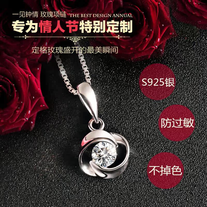 七夕恋人玫瑰之恋项链时尚925纯银情侣吊坠女锁骨链韩版正品包邮