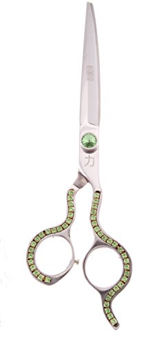 ShearsDirect Japanese Stainless Curved Professional Cutting Shear with Gem Stone Handle, 7", Green, 2.5 Ounce