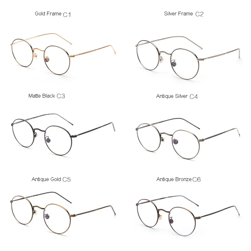 Frame Material: Copper Lens: can be changed to optical lens, for reading (Anti blue-ray) Style: Round, Simple, Japan&Korea Packing List: 1 x frame Quality: TOP Quality Color: 6 kinds of Colors in Frame