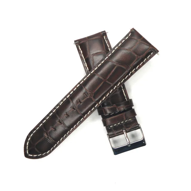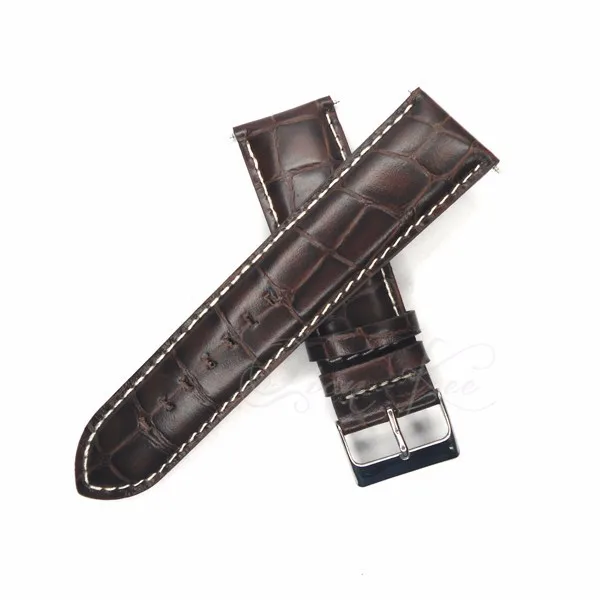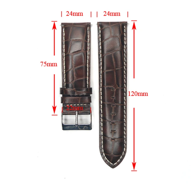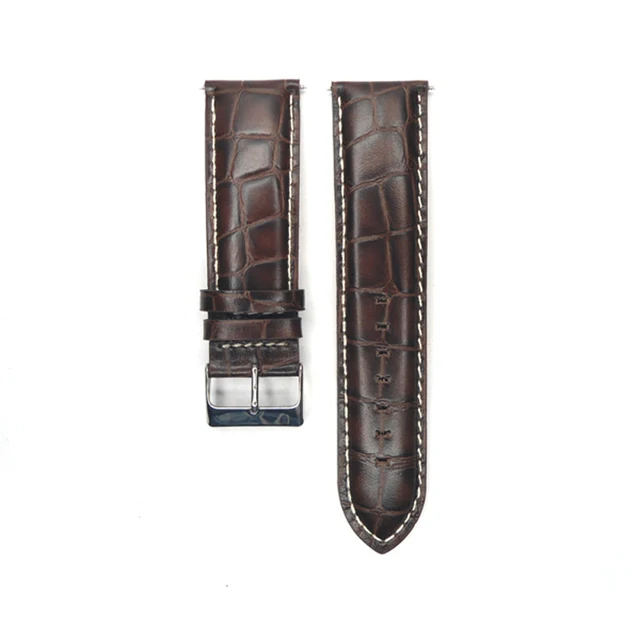 | [해외]24 미리메터 악어 광장 송아지 가죽 정품 가죽 시계 밴드 악어 손목 다크 브라운 버클 시계 스트랩 시간 |