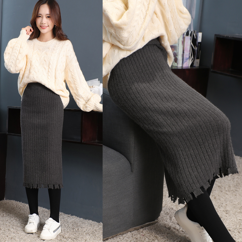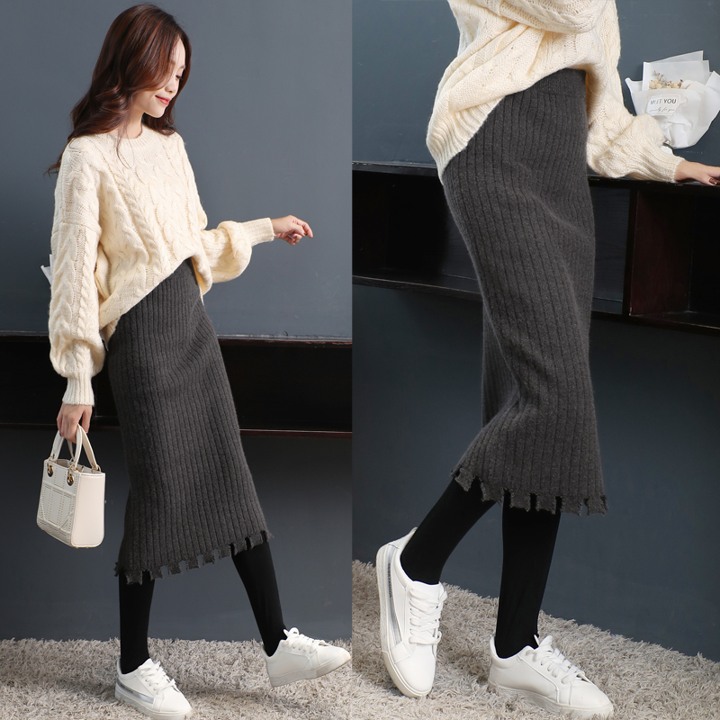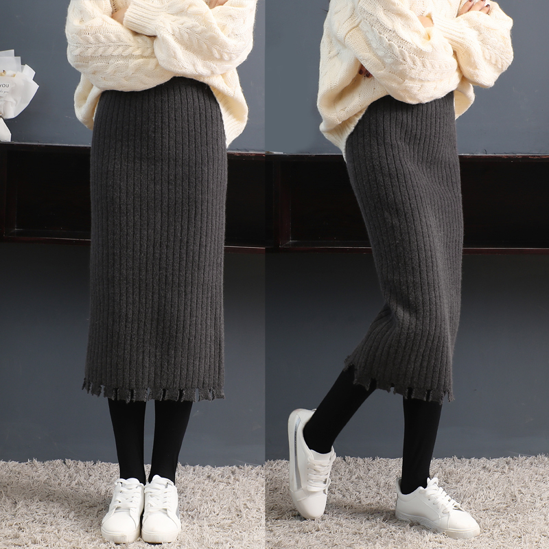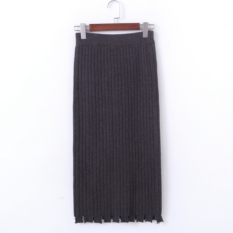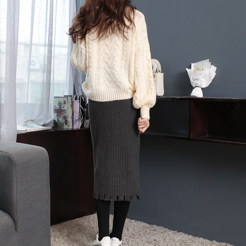 オシャレな裾カッティングがポイントのミモレ丈ニットスカート。