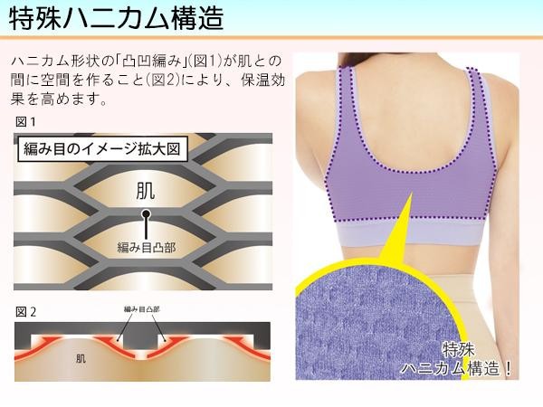 | 特殊ハニカム構造で気になる背中や脇の段々肉をスッキリ。ノンワイヤーで締め付けがなく、ストレスフリーなのに程よく引き締めサポートします!! |