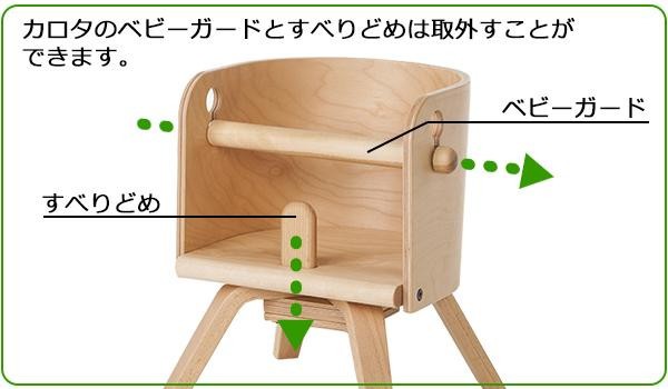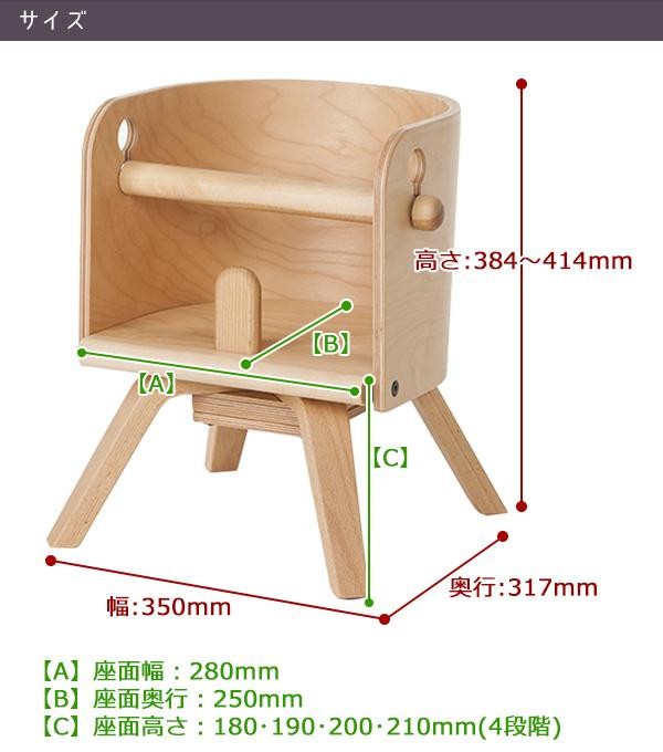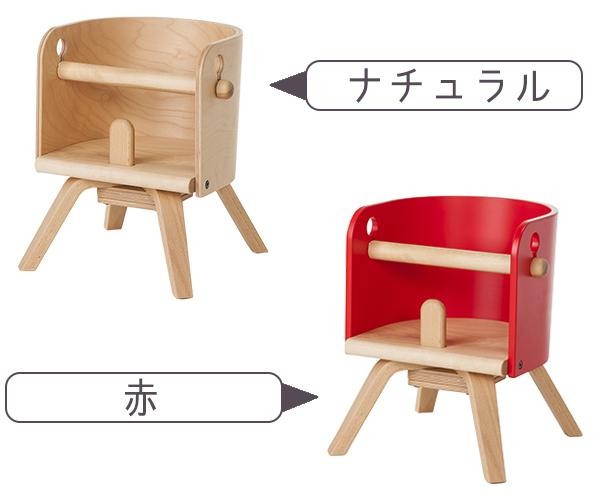 | 「にんじん」からインスピレーションを得てデザインされた、可愛らしいフォルムの子ども椅子です。間座を入れ替えることにより座面の高さを4段階に調節できますので、お子様の成長に合わせてお使い頂けます。 |