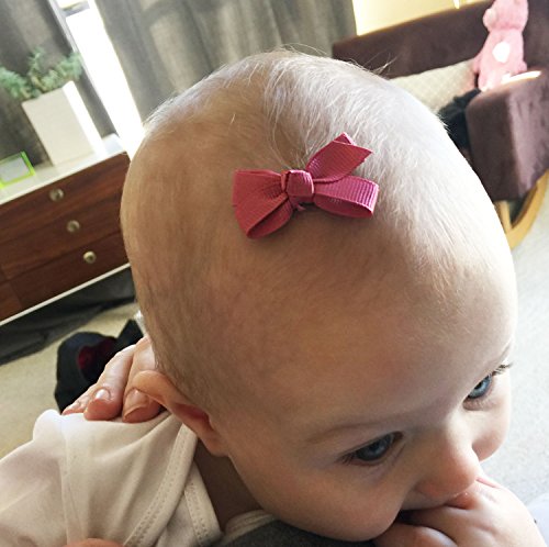 Binding : Apparel Product Description A sweet and adorable baby hair bow for infants, newborns and babies with fine hair! High quality grosgrain bow tied into our 'boutique style' bow. This boutique hair bow is signalled by its intricate loops and generally knotted centre. Boutique hair bows are gorgeous and have a little knot in the centre with loops on the sides. The bow is about 42 mm in total length and at its widest is about 23 mm wide loops. The ribbon used is 3/8 inch wide ribbon (9 mm)and tied at the center with 1/4 inch (6 mm) ribbon. This infant bow is stitched to Baby Wisp® Mini Latch clips that comb into fine wispy hair and stay put! Bald Babies love Baby Wisp® for this reason because our bows work. Water repellent coating, Lead-free, with a silicone sleeve for added comfort and hold. Mini Latch Wisp Clips for fine hair combs into fine, wispy baby hairs and latches on to stay in place securely and comfortably, even on the teeniest bit of peach fuzz hair. The Mini Latch Clip is perfect for bald baby girls with fine, wispy or barely any hair. All she needs is one little wisp of hair to stay in place. Choose your color: White, Black, Red, Navy, Bluebird, Light Grey, Wildrose Blush, Dusky Mauve, Colonial Rose, Light Pink. Snap open, comb in hair, snap closed. Do not press on baby's head. Fits 0-12 Months best. Never leave a child unattended with hair accessories as small parts pose a choking risk if put in mouth. All our clips are mercury, lead and cadmium free. 0
