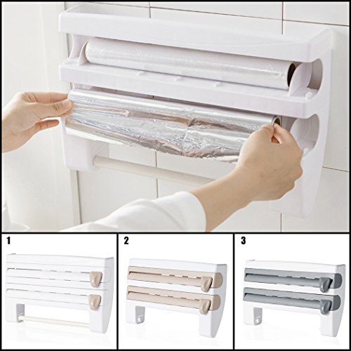 Roll Holder Rack, Outgeek Kitchen Roll Holder Cling Film Storage Rack Paper Dispenser