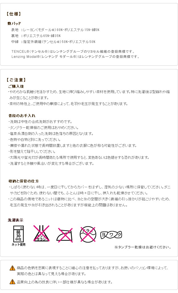 材質:表地-レーヨン80%・ポリエステル15%・綿5%、裏地-ポリエステル65%・綿35%、中綿-テンセル50%・ポリエステル50%