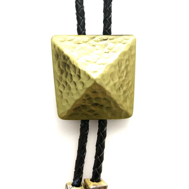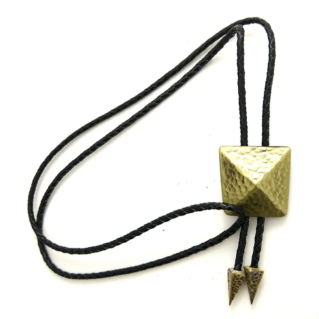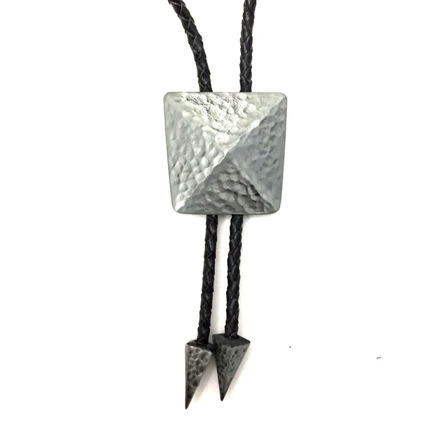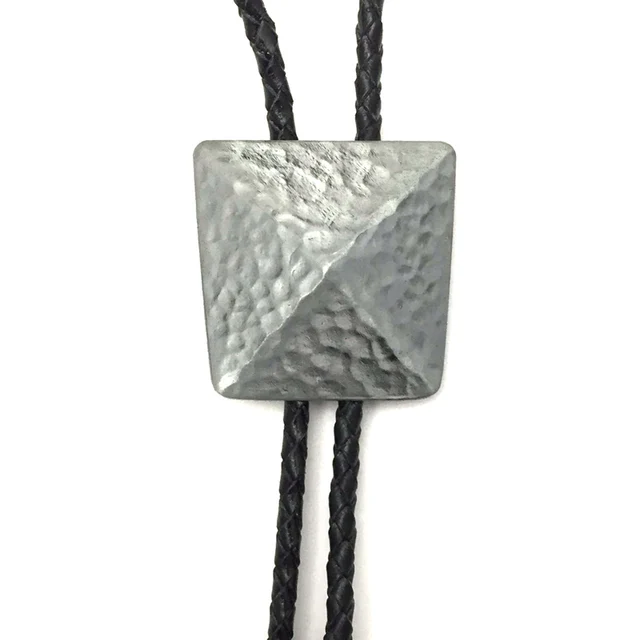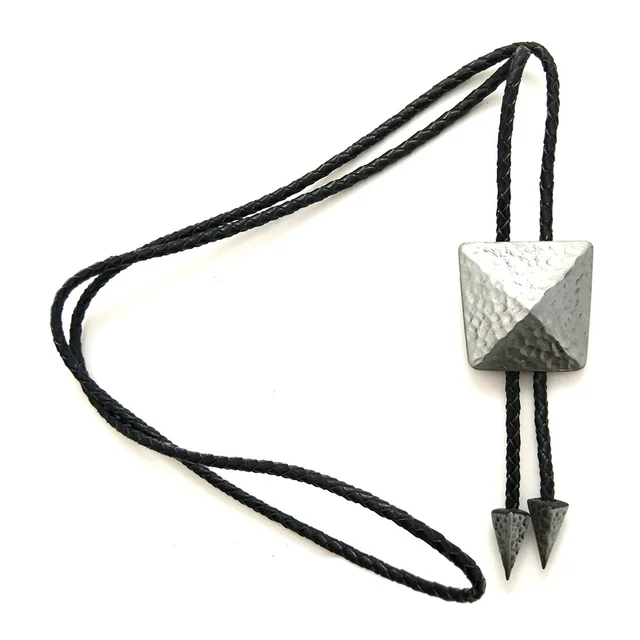 | [해외]실버 구리 컬러 3D 피라미드 스타일 볼로 타이 블랙 Pu 가죽 체인 소매 도매 정의 망 액세서리 카우보이 볼로 타이 |