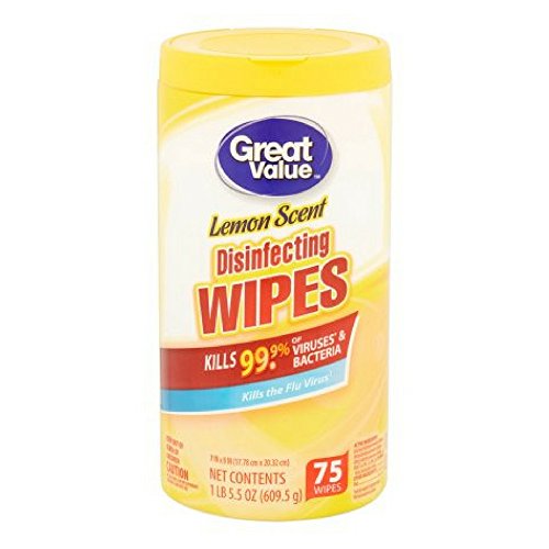 -. Brand : Great Value -. EAN : 0633562904297 -. Feature : Bleach free / Kills Pandemic 2009 H1N1 influenza A virus / Kills the flu virus -. Label : Great Value -. Manufacturer : Great Value -. ProductGroup : Kitchen -. ProductTypeName : KITCHEN -. Publisher : Great Value -. Studio : Great Value -. Title : Great Value Lemon Scent Disinfecting Wipes, 75ct (1) -. UPC : 633562904297