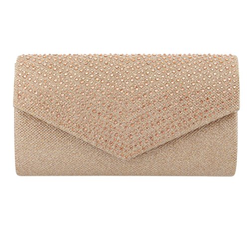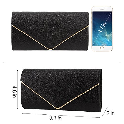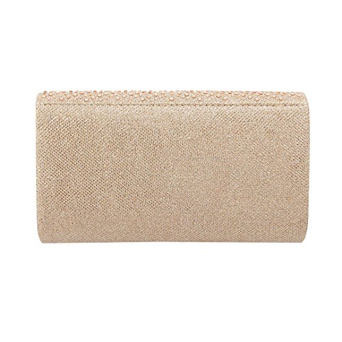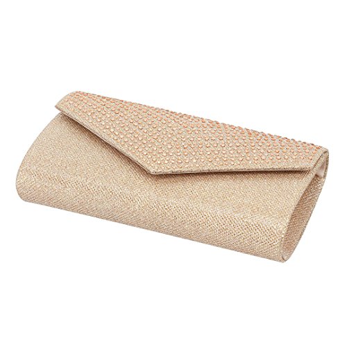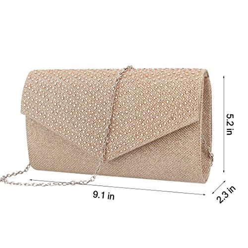 -. Feature : Material: Made of polyester and rhinestone, durable and convenient for use / Size: 9.1*2.3*5.2 inches(L*W*H), convenient and portable to carry on. A main compartment and 1 small open pocket to hold your phone, cards, cosmetics and other small personal stuffs, have detachable chain shoulder strap inside, solid magnetic snap closure / Glittering material decorated by rhinestone which looks shiny, eye-catching and stylish / Suitable for shopping, gathering, party and other occasions. It matches any clothing and can be used as shoulder bag, crossbody bag and clutch / Perfect gift for girls, women and yourself to carry on