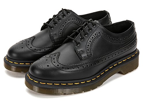 Binding : Apparel Product Description 5 Eyelet Brogue Bex sole in the classic black and white color run. Leather: Smooth leather is a hard wearing corrected grain leather with an unblemished finish. This is a Goodyear-welted product. The upper and sole are sewn together, not merely glued, like many footwear constructions. This, together with our Z welt-stitch and heat-sealing process, makes it unique to Dr. Martens. 0