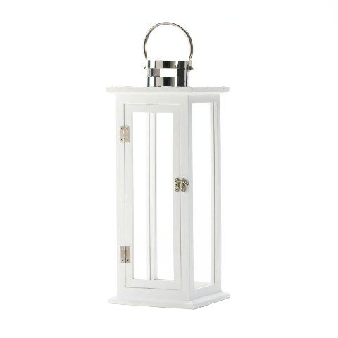 -. Feature : Material - Wood, stainless steel and glass. / Candle not included. / Size - 8 x 8 x 20 3/8 high in. / 24 high in. with handle. / Item Weight - 5 lbs.