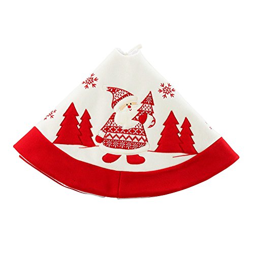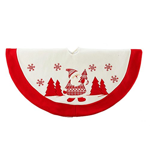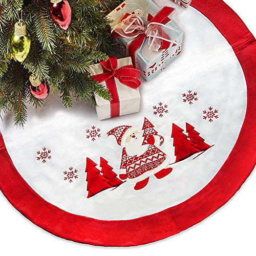 36 inch Christmas Tree Skirt, Flannel White Skirt and Red Edge, Handmade Knit Santa Claus and Snow for Christmas Decorations