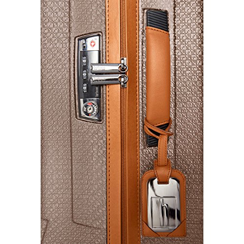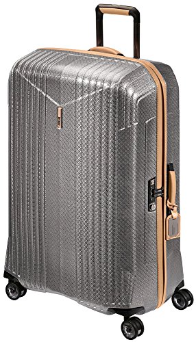 -. Feature : Lightweight, scratch and impact resistant, metalized Curv material / Exceptionally resilient, dual tube carbon fiber pull handle with leather grip / Premium leather carry handles / Smooth rolling double wheels with translucent polycarbonate core / 21.7x13.7x10