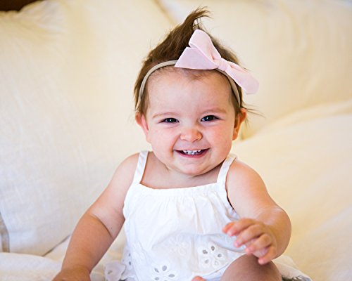 BOWS THAT STAY Bows should stay on the head, not around the eyes, the neck, or on the ground! They need to be tight, but not tight enough to irritate your baby. We've chosen a high quality, super soft nylon specifically designed to accomplish both. Thinner sections have been strategically crafted to allow the headbands to comfortably grow with your little girl. If the headband seems too tight they can be easily hand stretched. Simply grasp the bow end in one hand and the opposite side of the headband in the other hand. Pull your hands apart and stretch the headband until it fits more comfortably. Some marks on the head are normal. STAY ON FLEEK We want to keep your little girl on fleek every day, no matter what outfit she is wearing. Our complete collection offers a massive selection of bows for nearly any occasion, outfit, or color scheme. You will always have a bow to match the latest trends in baby fashion. Each regular bow pack comes with a variety of colors, all in a similar style. We offer 10 regular bow packs, each a unique style. We also offer 3 mega-packs that include bows from several different styles. NO SURPRISES You deserve to know exactly what you are buying. If you buy a pack of bows and are surprised by what shows up at your house, we have failed you! We offer the maximum number of pictures allowable on all of our product listings to try and showcase exactly what you are buying. Our Instagram account @scarlett_robin_bowtique is regularly updated with lifestyle pictures. We want you to be an informed and happy buyer! DISCLAIMER These are not designed to be washed in a washing machine or dried in a dryer. If washing is necessary, hand wash them in cold water. WARNING Scarlett Robin bow packs are sold ONLY by PureBloom Products. Any other seller is a counterfeit and will not send the bows you are expecting. 0 |