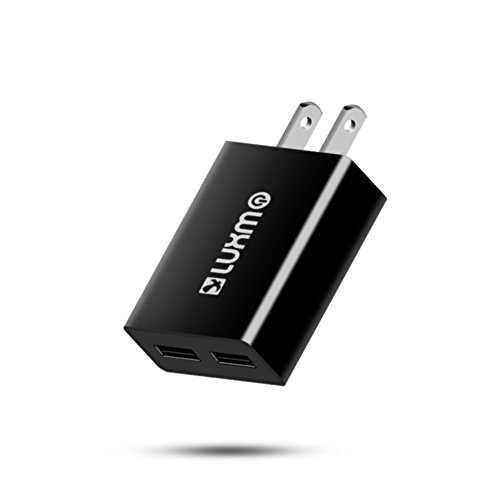 12W / 2.1A ultra thin and slim lightweight dual USB port travel home wall charger - Input: AC 100-240V, 50/60Hz, 0.3A. Output: USB Port 1: (5.0V, 2.1A - MAX) USB Port 2: (5.0V, 2.1A - MAX). Max power: 12W. Features Smart IC chips that recognize a fully charged battery and automatically switch to safe mode to prevent over-charging and short circuit