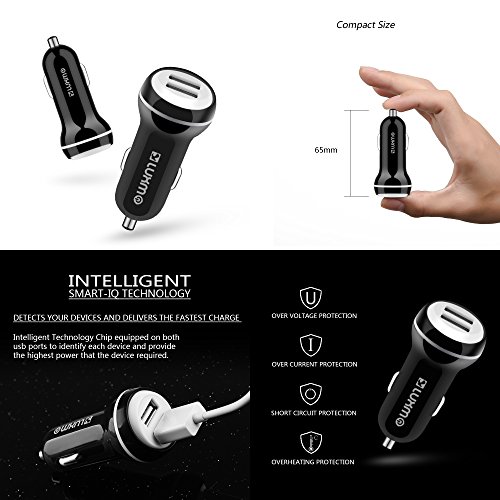 2.1A small mini compact dual port usb car charger - Input voltage:12-24V. Output voltage/current:5V 2.1A DC. Intelligent Smart-IQ technology chip equipped on both USB ports identify each device and deliver the highest power required by that device