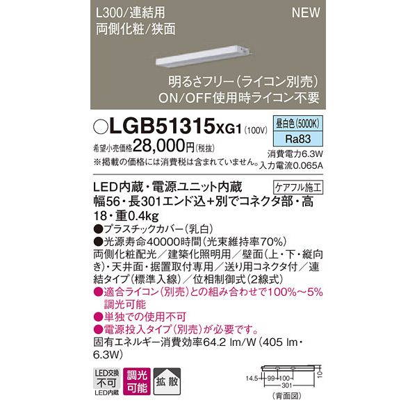 ●光源:LED(内蔵、昼白色タイプ)、色温度:5000K、光源寿命40000時間(光束維持率70%)