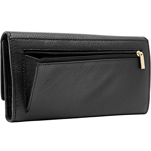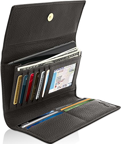 - PREMIUM QUALITY: This Wallet clutch for women is made with high quality genuine full grain leather that is extremely soft and durable. Its smooth texture makes for an elegant organizer, perfect for every day use. This wallet comes with a removable checkbook holder, giving you the option to store your checkbook in your wallet. This clutch is made with high fashion and design style in mind for you to have the perfect all in one wallet for everyday use.