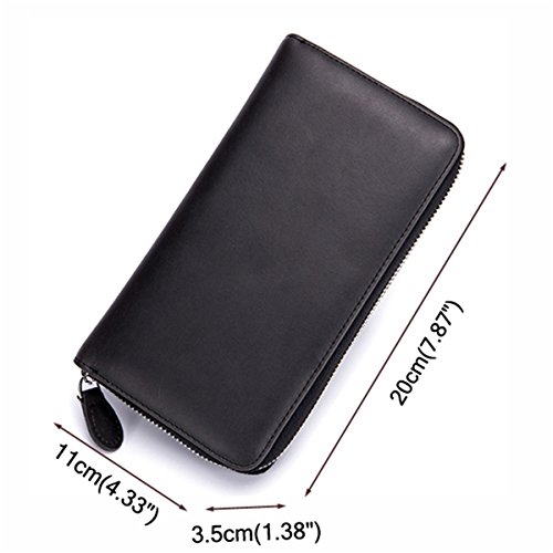- ✔Material and Quality: Genuine Leather, Zip Closure; Top quality leather, soft and durable,top quality zipper ensures long usage time and protect your ID card, credit card. Dimensions: 7.87''x1.38''x4.33''(L x W x H)