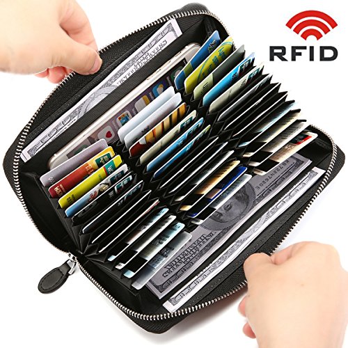 JOSEKO Card Holder Wallets, Women Men RFID Antimagnetic 36 Card Slots Dull Polish Genuine Leather 6inch Phone Bag Long Wallet