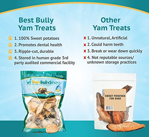 -. Feature : Made From Sweet Potatoes-and That's It! Yam Treats are made from California-grown sweet potatoes dehydrated to crispy, tasty perfection. These single-ingredient treats are proudly made in the USA. / All Natural & Vegetarian: Yam Treats have no genetically modified organisms or other scary, unpronounceable ingredients. They are safe to eat, non-allergenic, and gentle on your dog's sensitive tummy! / Helps Your Pup Stay Vibrant & Active: Packed with fiber, beta carotene, Vitamin B and C, and more, Yam Treats are loaded with the nutrients your dog needs to thrive. / Removes Plaque & Tartar, Too: The ridged surface of each treat provides a scraping action that helps keep your K-9 kid's teeth and gums healthier! / No Staining or Odor: Our chews won't leave you with a messy, smelly carpet. They're perfect for dogs of all sizes, with treat lengths ranging from 1 to 4 inches.