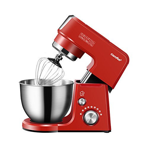 Comfee 2.6Qt Die Cast 7-in-1 Multi Function Tilt-Head Stand Mixer with SUS Mixing Bowl, Whisk, Hook, Beater, Splash Guard.4 Outlets, 7 Speeds & Pulse, 15 Minutes Timer Planetary Mixer