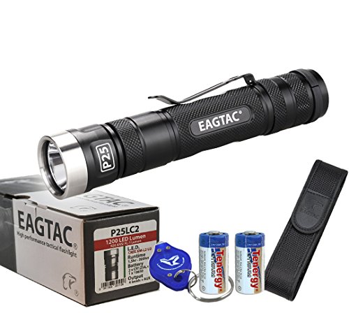 Eagletac P25LC2 1200 Lumens 230 Yards Cree XM-L2 U2 LED Flashlight w/ Premium Holster, Lanyard, 2x CR123A Tenergy Batteries & Lumen Tactical Keychain Light