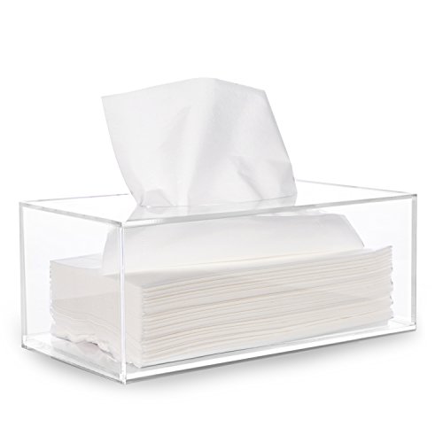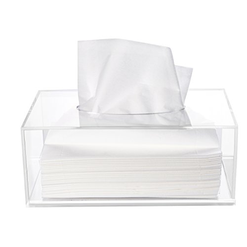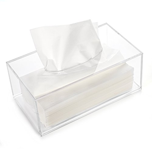 HBlife Facial Tissue Dispenser Box Cover Holder Clear Acrylic Rectangle Napkin Organizer for Bathroom, Kitchen and Office Room