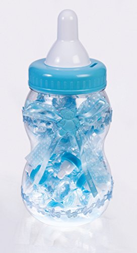 This large baby bottle bank is the prefect addition to your baby shower. Each bank contains 18 small baby bottles that can be filled with your favorite candy or treat to leave behind as a party favor. Available in blue for boys, pink for girls, and yellow, green and purple for those that want to be surprised.