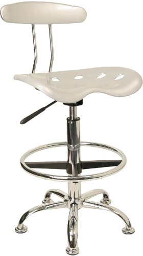 -. Feature : Molded ''Tractor'' Seat / Height Adjustable Chrome Foot Ring / 10'' Height Range Adjustment / Black Plastic Floor Glides / High Density Polymer Construction