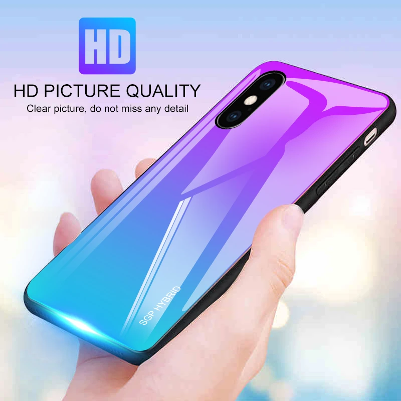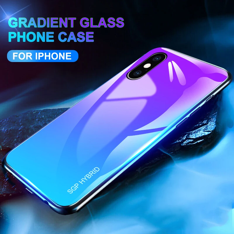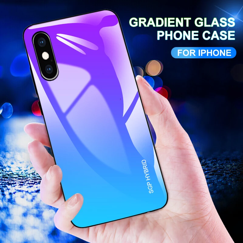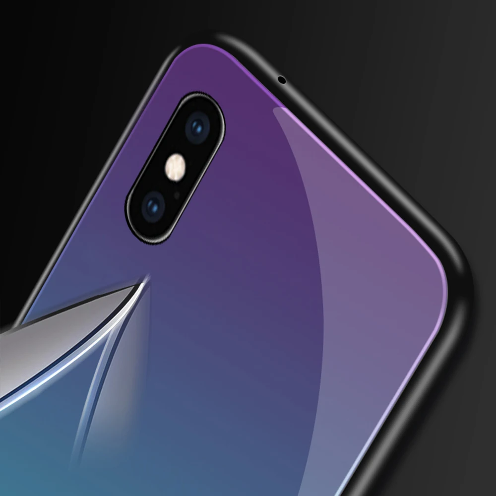 Size:Aurora Gradient Tempered Glass Case For iphone X 7
