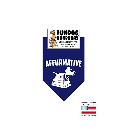 -. Binding : Misc. -. Brand : FunDog Bandanas -. Color : Navy Blue -. EAN : 0083351970932 -. Feature : Cute! / Fun! / Affordable! / Makes a great gift! -. Label : The Dog Perk Corporation -. Manufacturer : The Dog Perk Corporation -. PackageQuantity : 1 -. ProductGroup : Pet Products -. ProductTypeName : PET_SUPPLIES -. Publisher : The Dog Perk Corporation -. Size : Miniature for Small Dogs less than 20 lbs -. Studio : The Dog Perk Corporation -. Title : MINI BANDANA - Affurmative for small dogs less than 20 lbs - Navy Blue -. UPC : 083351970932