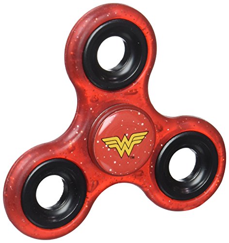 -. Title : FOCO Justice League Diztracto Spinnerz Three Way Fidget Toy-Wonder Woman Spinner Toy, Red, 3" x 2.75"