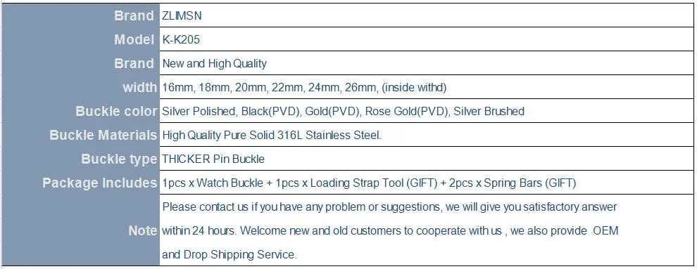 • Buckle Width: 16mm, 18mm, 20mm, 22mm, 24mm, 26mm