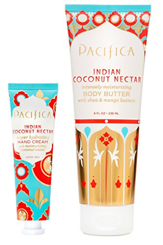 This bundle contains one 2.25 fl. oz. tube of Indian Coconut Nectar Super Hydrating Hand Cream and one 8 fl. oz. tube of Pacifica Indian Coconut Nectar Body Butter