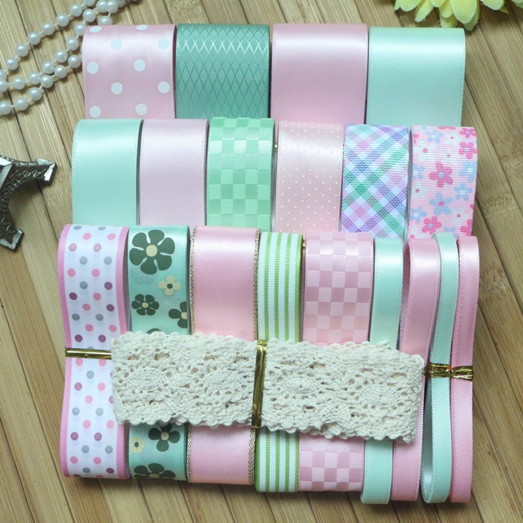 pink/light green color mix beauty ribbon set