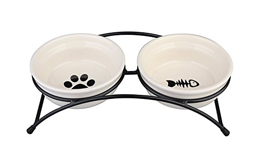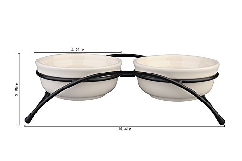 Name : Pet Bowl Color : White Material : high-grade ceramic Bowl Size : 12cm*5cm/per Frame Size : 27cm*8cm Package Weight : 750g