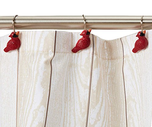 13-Piece set includes the fabric shower curtain and 12 decorative cardinal bird hooks