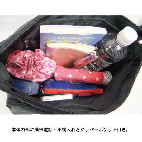 ・本体内部に携帯電話・小物入れ、ファスナーポケット付き