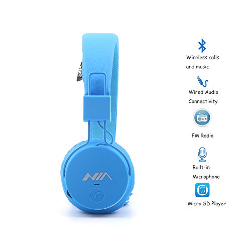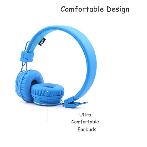 Bluetooth Over Ear Foldable Headphones, Built-in Microphone, Hi-Fi Stereo, Soft Earmuffs and Wired Mode for PC/ Cell Phones/ TV, AiTalk X2 Colorful Wireless Headsets-Blue