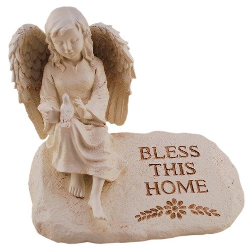 Joseph Studio 48849 Angel on Stone Figure with Verse Bless This Home, 9.5-Inch